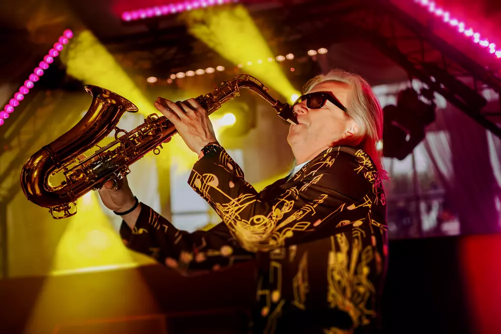 Wyobraź sobie moment, gdy parkiet rozświetla ciepłe światło reflektorów, a w tle pojawia się delikatny dźwięk saksofonu. Wraz z towarzyszącym mi saksofonistą na imprezie, którą prowadzimy, dbamy o stworzenie niesamowitego, poruszającego klimatu. Energia setów klubowych z elegancją żywego instrumentu, na którym gra Grzegorz, jeden z najlepszych saksofonistów w Polsce, to magia w czystej postaci. Goście nie tylko ruszają się w rytm muzyki, ale naprawdę ją przeżywają, czując emocje płynące z gry na żywo.