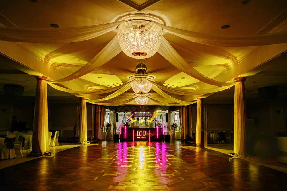 Iluminacje świetlne stanowią doskonały sposób na budowanie atmosfery. Ciepłe, pastelowe światło podczas pierwszego tańca albo energetyczne barwy na kulminację imprezy zapewnią zgromadzonym efekt WOW i pozytywnie wpłyną na emocje podczas zabawy. Dekoracja sali światłem sprawia, że przestrzeń zmienia się jak w bajce, a zdjęcia i nagrania zyskują niezwykły klimat. Chociaż oświetlenie nie kojarzy się bezpośrednio z atrakcjami, to jednak mocno wpływa na odbiór całego wydarzenia. Dzięki umiejętnej dekoracji światłem mamy możliwość stworzyć wydarzenie dopasowane kolorystyką, atmosferą czy stylem do Twojej wizji.
